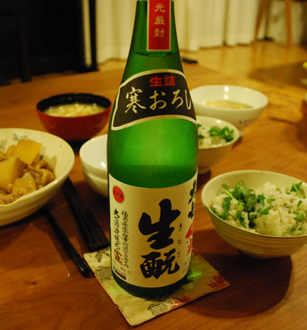 お?香りは間違いなく生もと。って当たり前。ふわんと香ります。なんとなくうれしい。ひとくちいただくと結構キレててくいっといけちゃう。甘すぎず、ドライすぎず。でもたぶんカタイのかな〜?って感じです。ちょっとだけ古い感じの香り。なんとなく既知感のある香り。